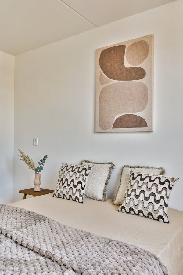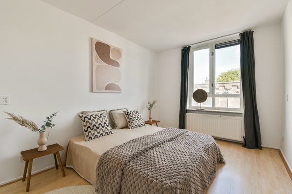 - De portiekwoning heeft een woonoppervlakte van 66 m² en beschikt over 3 kamers, waarvan 2 slaapkamers;