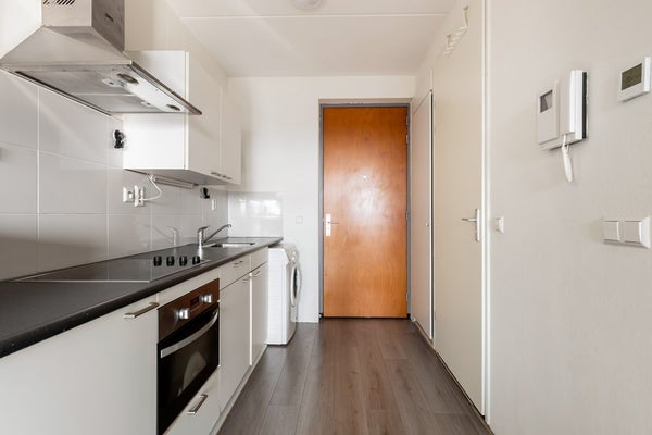 De studio is voorzien van een woon/slaapgedeelte. Twee grote openslaande ramen op het zuiden, waardoor u in het vroege voorjaar al heerlijk in de zon kunt zitten. De keuken is voorzien van diverse inbouwapparatuur: elektrische kookplaat, oven, afzuigkap en vaatwasser. De badkamer bestaat uit een douche, toilet en wastafel. Tevens is het appartement is voorzien van vloerverwarming.