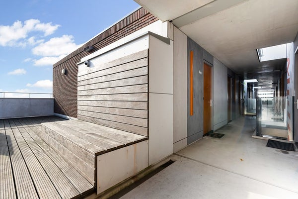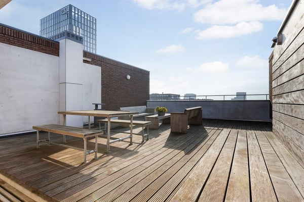 Het luxe nieuwbouwcomplex uit 2014 beschikt over een gemeenschappelijke binnentuin, meerdere dakterrassen, 2 liften en een handige fietsenberging. Het appartement is door de ligging zeer zonnig en licht en heeft een prachtig uitzicht op de binnentuin. Dus NIET aan de kant van het spoor!