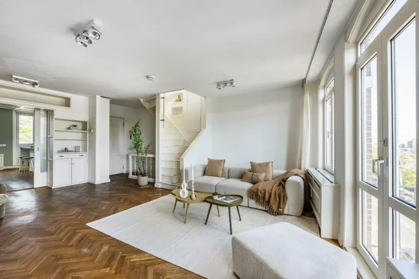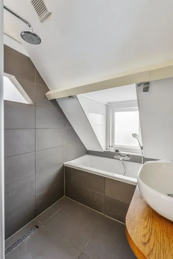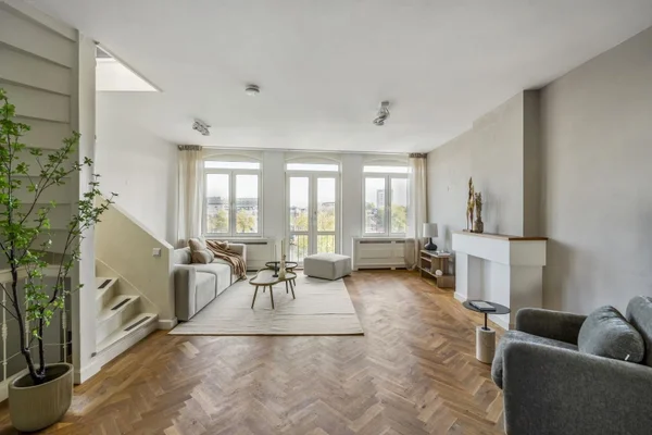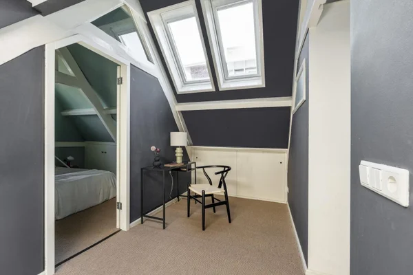 Dit karaktervolle bovenhuis aan de Amsteldijk 64-3 biedt een prachtig uitzicht op de Amstel en een unieke indeling. Op de derde verdieping bevindt zich een ruime en lichte zitkamer met toegang tot een romantisch balkon en een gezellige leefkeuken. Deze keuken biedt ook directe toegang tot een zonnig terras van ca. 16 m². De bovenste verdieping heeft twee royale slaapkamers, een multifunctionele ruimte en een moderne badkamer met ligbad en douche. In de buurt zijn diverse horeca en sportfaciliteiten te vinden. Het appartement is uitstekend bereikbaar met openbaar vervoer en ligt op eigen grond. Er is veel lichtinval, opslagruimte met handgemaakte kasten en een functionerende schoorsteen.