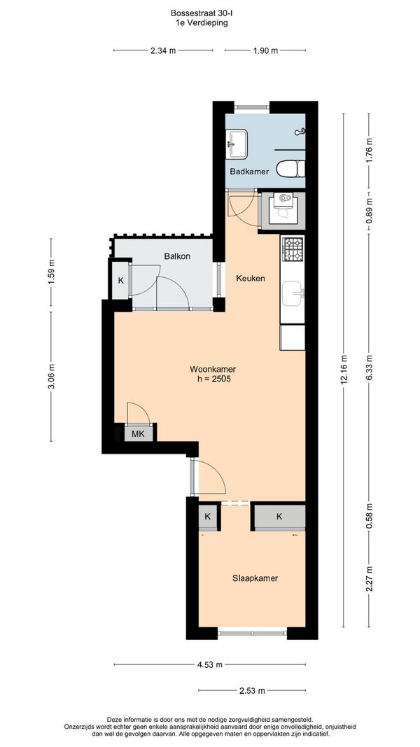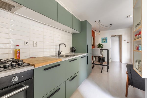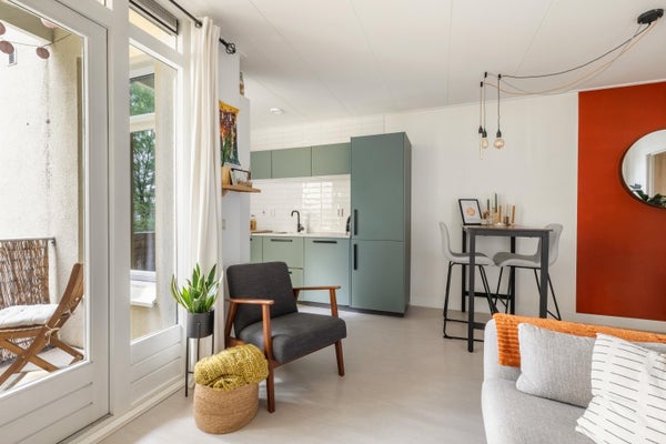• De galerijflat heeft een woonoppervlakte van 34 m² en beschikt over 2 kamers, waarvan 1 slaapkamer;