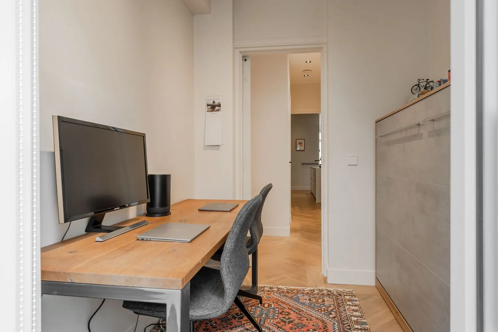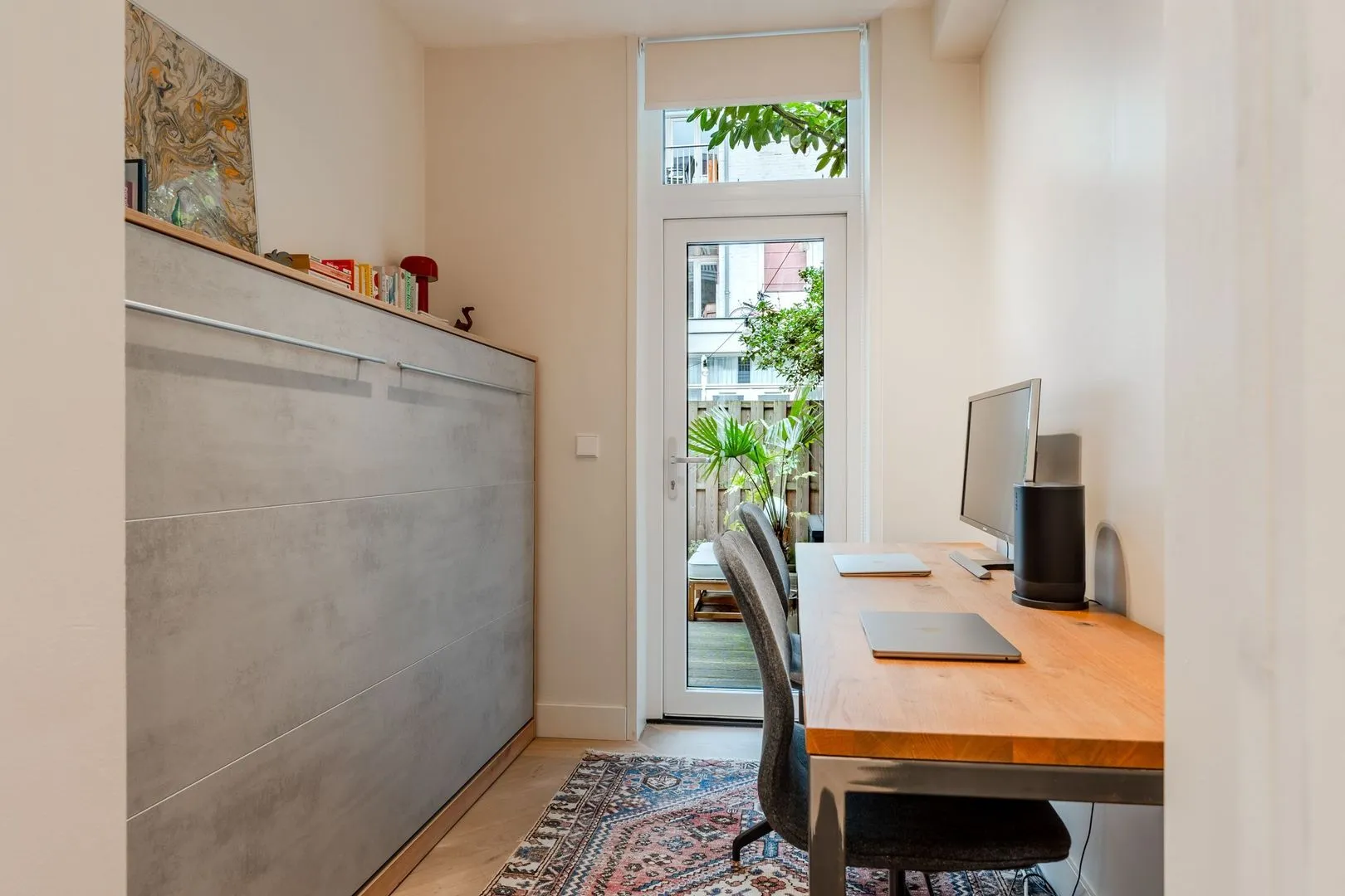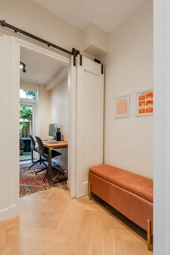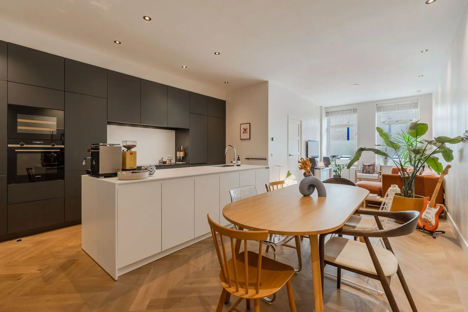In Amsterdam Oost, nabij het Oosterpark, vindt u deze prachtig uitgebouwde benedenwoning van circa 78 m², met een zonnige tuin van 28 m² op het noordwesten. Bij binnenkomst valt de indrukwekkende plafondhoogte van 2,90 meter op, die zorgt voor een ruimtelijk gevoel en veel lichtinval. De woning is in 2018 volledig gerenoveerd met oog voor detail. De visgraat houten vloer brengt karakter, terwijl vloerverwarming het hele jaar door zorgt voor comfort. De luxe open keuken met een royaal spoeleiland is uitgerust met hoogwaardige apparaten van Siemens en Miele. De badkamer heeft een inloopdouche, vrijstaand ligbad en dubbele wastafel. Met twee slaapkamers die toegang bieden tot de tuin en een eigen entree is dit een instapklare woning in een levendige buurt.