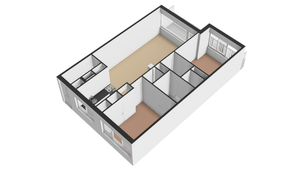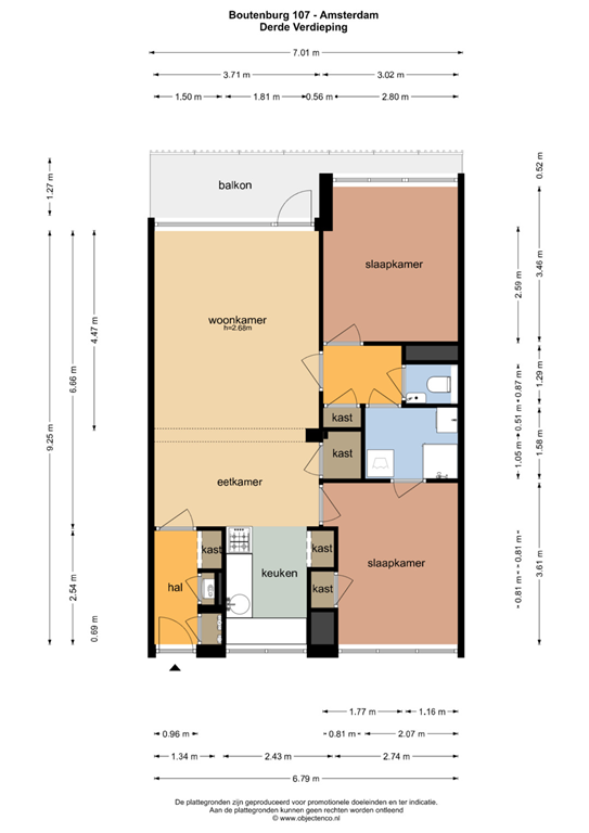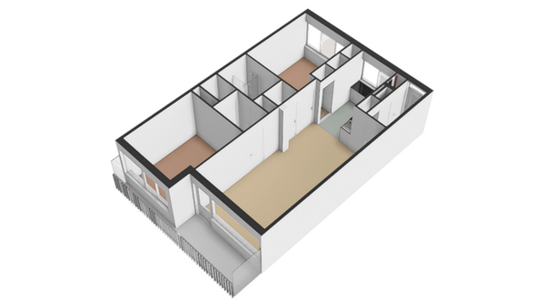 - De galerijflat heeft een woonoppervlakte van 64 m² en beschikt over 3 kamers, waarvan 2 slaapkamers;