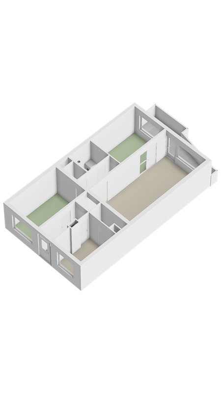 - De galerijflat heeft een woonoppervlakte van 79 m² en beschikt over 3 kamers, waarvan 2 slaapkamers;