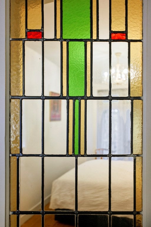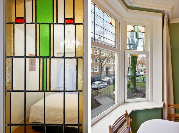 Authentieke details: glas-in-loodramen, originele houten vloeren