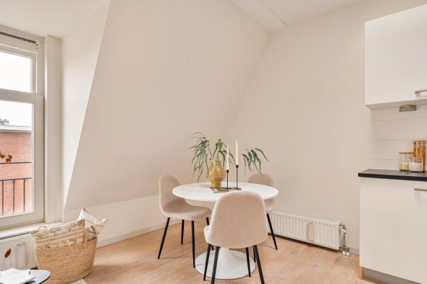 This charming and efficiently laid-out 2-room apartment of approximately 37 m² is located on the fourth floor and features a wonderful rooftop terrace of approximately 10 m² with open views over the rooftops of Oud-West.