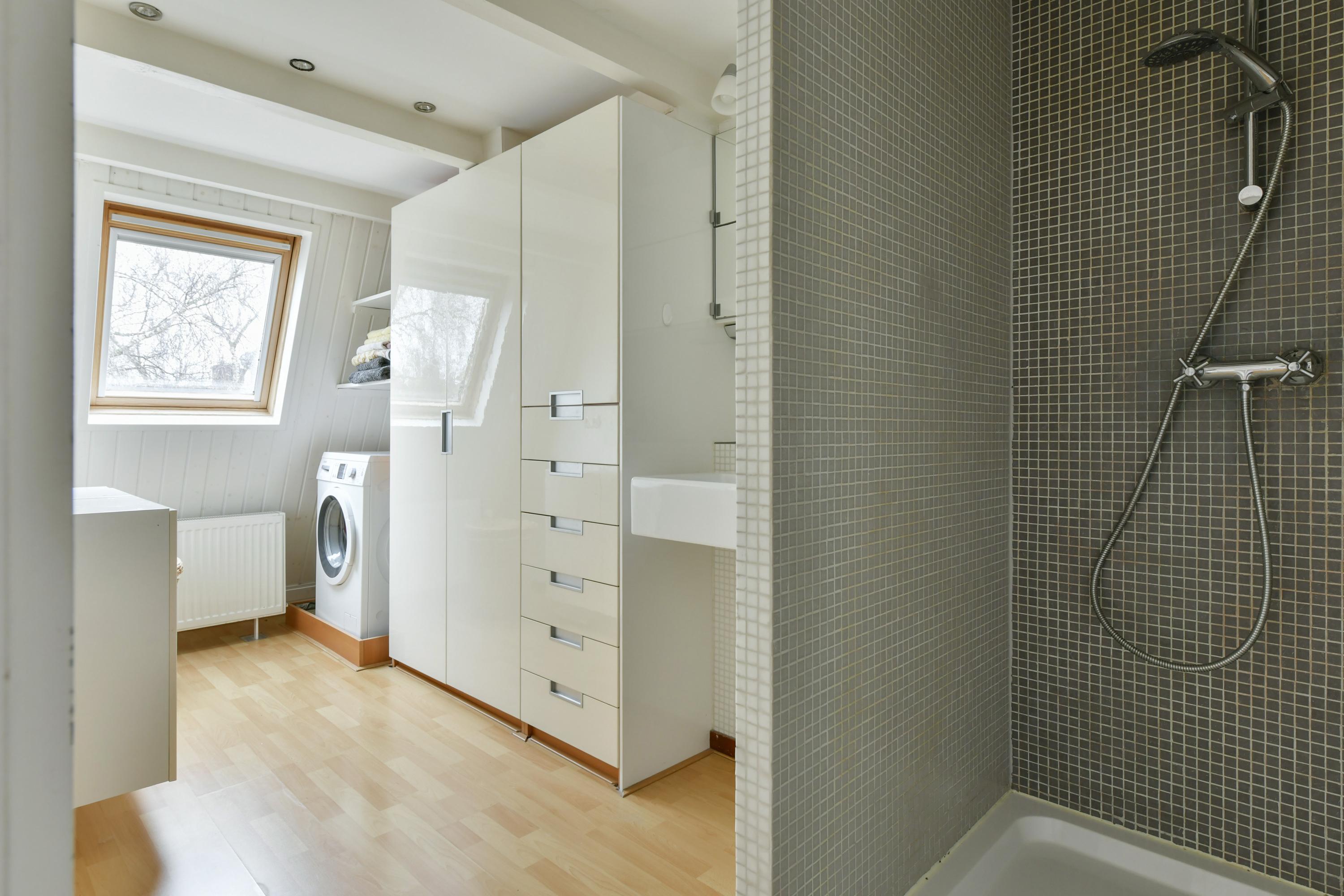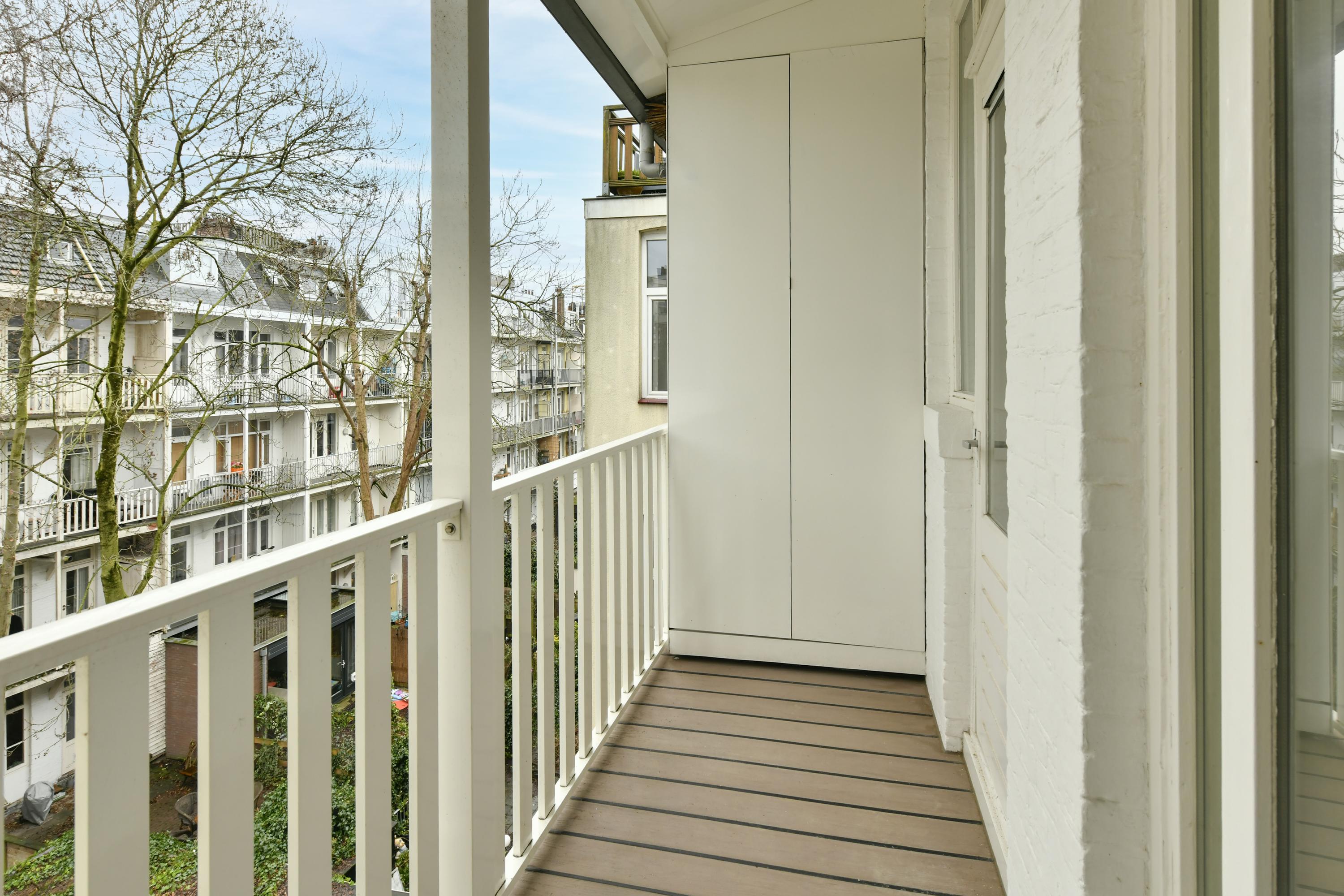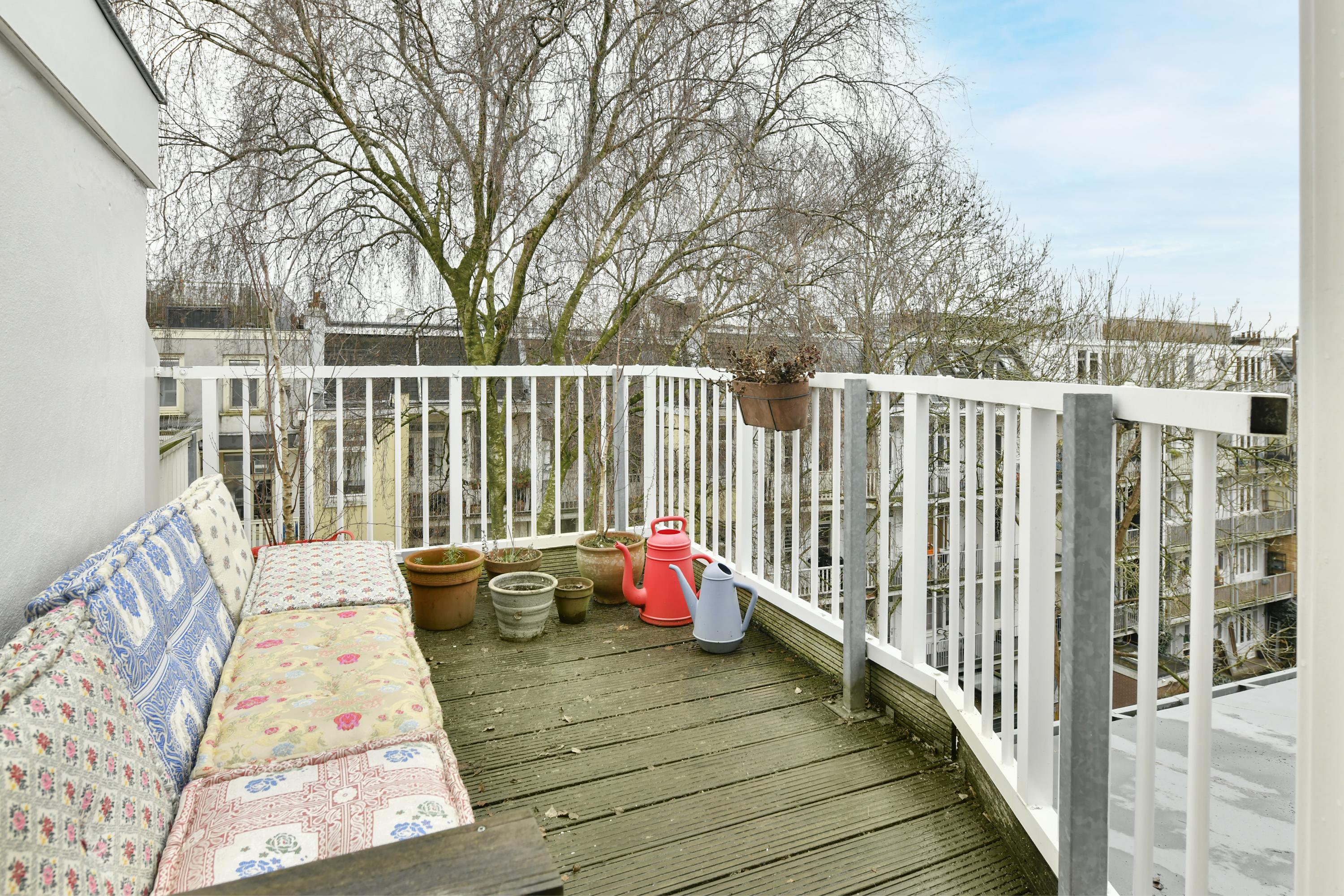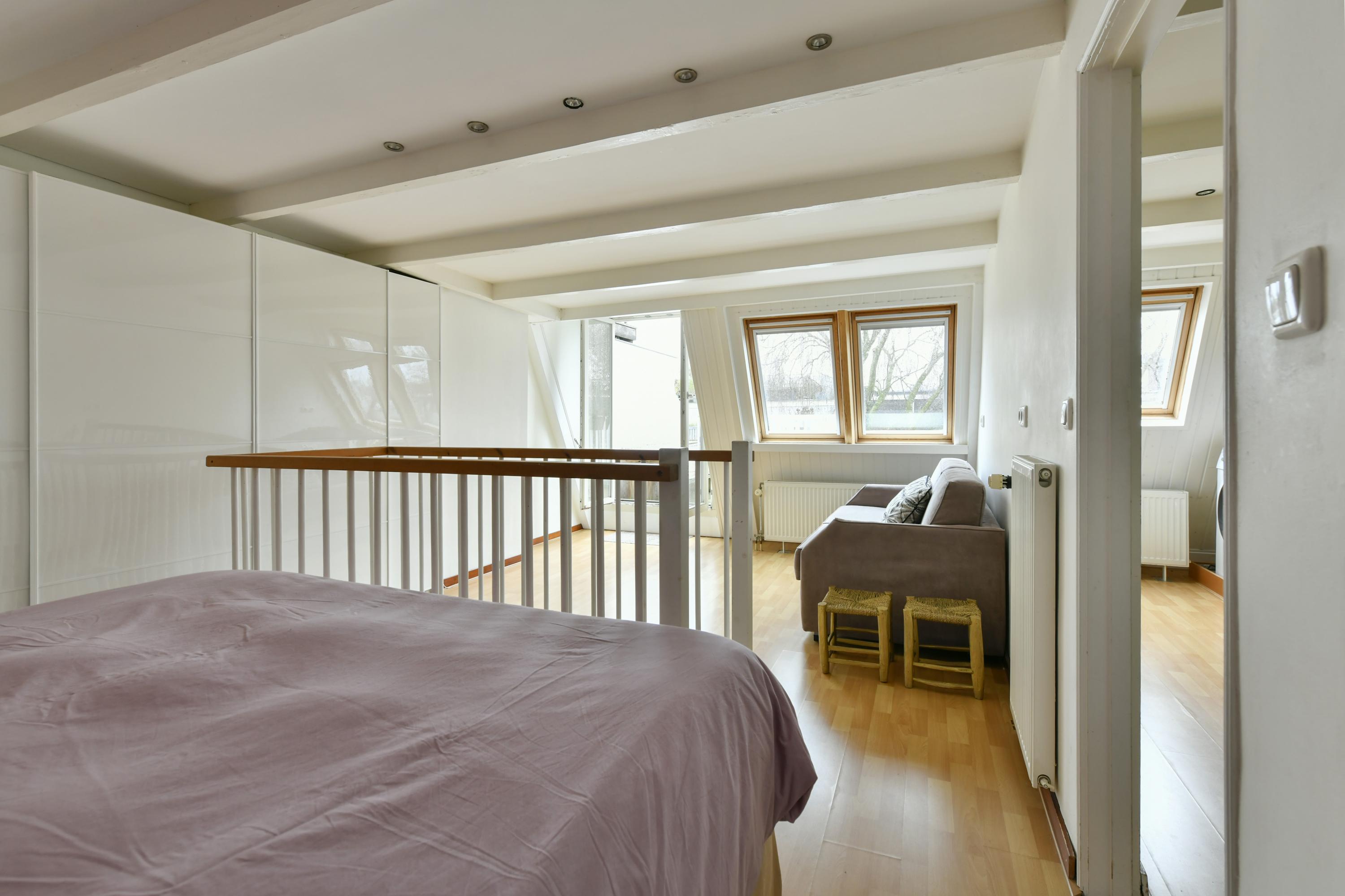 Deze gezellige dubbele bovenwoning in de populaire Staatsliedenbuurt heeft een zonnig dakterras en een mooi gerenoveerd balkon van 10 m2. De ruime doorzon woonkamer, vrolijk onderbroken door een interne trap, creëert een eethoek bij de keuken. Je vindt er ook een extra werkkamer en op de bovenverdieping een grote slaapkamer met en-suite badkamer en inloopkasten. Vanuit de woning geniet je van veel lichtinval. Het appartement ligt op eigen grond, dus geen erfpacht. De keuken is modern ingericht met nieuwe inbouwapparatuur en geeft toegang tot het balkon. In de buurt zijn culturele hotspots en goede openbaar vervoerverbindingen. De woning heeft een woonoppervlakte van 76 m2, met twee slaapkamers en een badkamer voorzien van inloopdouche. Energielabel C.