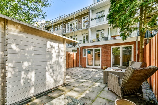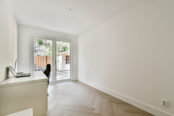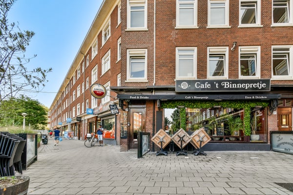 In een rustige straat op de grens van De Baarsjes en Bos en Lommer ligt dit volledig gerenoveerde benedenhuis, met twee slaapkamers en een zonnige tuin op het zuidwesten. De woning heeft een woonoppervlakte van circa 78 m², is modern afgewerkt en beschikt over energielabel A. De eigen entree leidt naar een hal met meterkast en toilet. De ruime woonkamer heeft een open keuken met kookeiland, vaatwasser en oven. Beide slaapkamers bieden toegang tot de tuin, waar ook een berging te vinden is. De badkamer is uitgerust met een inloopdouche, ligbad en wastafel. Deze woning is gelegen op erfpachtgrond, met een jaarlijkse canon van € 457,08. De omgeving heeft goede verbindingen en veel groene ruimtes. De servicekosten bedragen € 111,16 per maand.