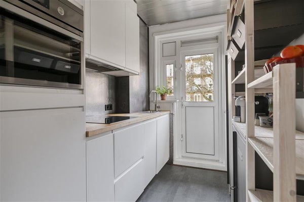 De keuken is afzonderlijk gesitueerd en praktisch ingedeeld, voorzien van diverse inbouwapparatuur en directe toegang tot het balkon. Vanaf het balkon geniet je van een uitzicht over de verzorgde binnentuin, een oase van rust midden in de stad.