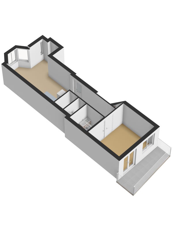 - De galerijflat heeft een woonoppervlakte van 43 m² en beschikt over 2 kamers, waarvan 1 slaapkamer;