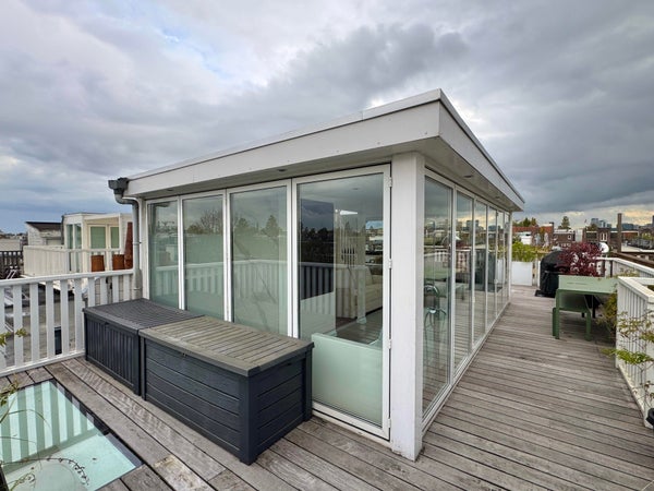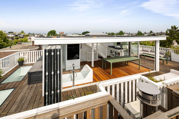 De vierde verdieping vormt een exclusieve dakopbouw met wellness-uitstraling, voorzien van een whirlpoolbad, aparte douche, tweede toilet en een multifunctionele ruimte. Via volledig te openen harmonicadeuren is het zonnige dakterras van 44 m² bereikbaar. Boven het terras bevindt zich een extra dakdek van 28 m² met panoramisch uitzicht over Oud-Zuid.