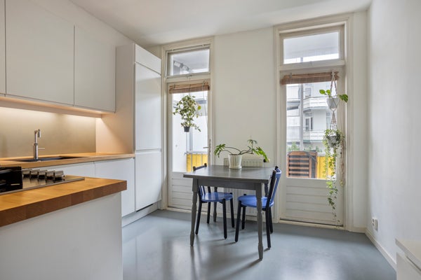 Dit charmante, lichte appartement bevindt zich in de Orteliusstraat in Amsterdam-West, vlakbij het Erasmuspark en het Rembrandtpark. Je komt binnen op de tweede verdieping, waar de ruime woonkamer met authentieke ramen veel lichtinval biedt door de speelse, schuin lopende gevel. De badkamer, toegankelijk vanuit de hal, is voorzien van een hoekligbad, wastafel, toilet en aansluiting voor een wasmachine/droger. De ruime woonkeuken, met moderne inbouwapparatuur, biedt voldoende ruimte voor een eettafel en leidt naar een oostelijk balkon, ideaal voor een zonnig ontbijt. Het appartement heeft een mooie gietvloer en een warme, sfeervolle uitstraling. De actieve VvE betreft 4 leden. Met een woonoppervlakte van ca. 52 m², een servicekosten van € 101,- per maand en uitstekende bereikbaarheid met OV en fiets, is dit appartement perfect voor starters of stellen.