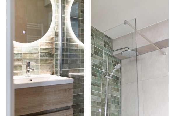 • Luxe badkamer met inloopdouche en natuursteen afwerking