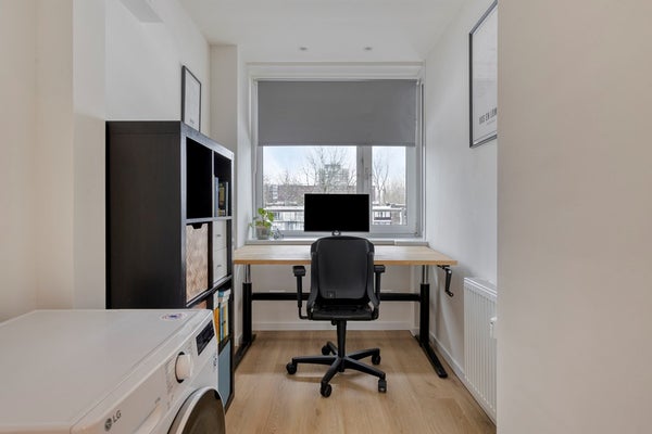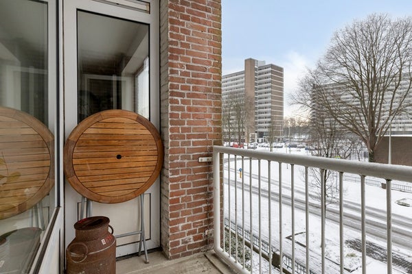 Het balkon is toegankelijk vanuit de woonkamer en vormt een fijne verlenging van de leefruimte. Er is voldoende plek voor een bankje, waardoor je hier heerlijk kunt ontspannen met een kop koffie of een goed boek. Een prettige buitenruimte om even tot rust te komen in de stad. Door de ligging op het zuidwesten heb je de hele middag en avond zon.