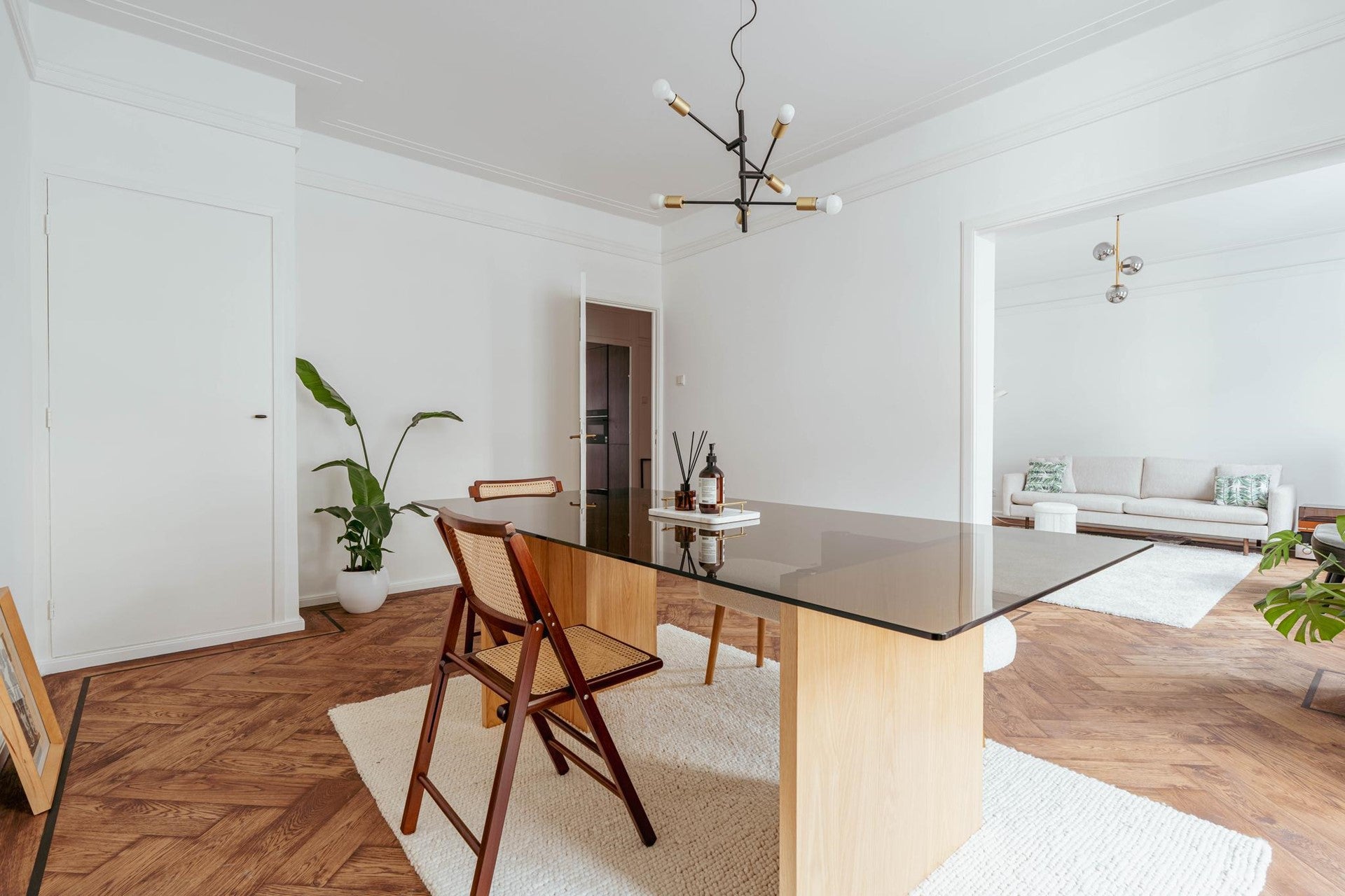 Stap binnen in deze unieke bovenwoning van 151 m², gelegen aan de Tinrotettostraat. Deze woning, verdeeld over twee verdiepingen, biedt vier ruime slaapkamers en drie luxe badkamers. De recente renovatie in 2024 heeft geleid tot een hoogwaardige afwerking van de badkamers en de compleet vernieuwde keuken. Bij binnenkomst op de eerste verdieping vind je een grote entreeruimte die leidt naar een sfeervolle woonkamer met een charmante erker, waar een luxe bio-ethanolhaard de ambiance versterkt. De keuken, met hoogwaardige inbouwapparatuur, heeft toegang tot een aangenaam balkon. Op de bovenverdieping zijn nog eens twee slaapkamers en luxe badkamers te vinden. Deze bovenwoning bevindt zich in een levendige buurt nabij winkels, restaurants, en parken, met uitstekende verbindingen naar het openbaar vervoer.