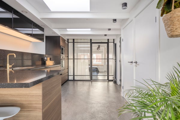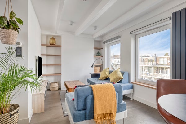 Wil je stijlvol wonen in Amsterdam? Dit gerenoveerde 2-kamer appartement op de bovenste verdieping aan de Kanaalstraat ****** is instapklaar en gelegen op eigen grond. De woning, met een gebruiksoppervlakte van ca. 51 m², ligt in de populaire Helmersbuurt, dichtbij de Overtoom, Vondelpark en De Hallen. Op de vierde verdieping kom je binnen via het gemeenschappelijk trappenhuis. De lichte keuken beschikt over moderne inbouwapparatuur en een gezellige bar. De sfeervolle living heeft openslaande deuren naar een Frans balkon. De royale slaapkamer is voorzien van maatwerk kledingkasten en een werkplek. De moderne badkamer beschikt over vloerverwarming en een ruime douche. De VvE is actief, met servicekosten van €126 per maand. Energielabel C maakt dit appartement compleet.
