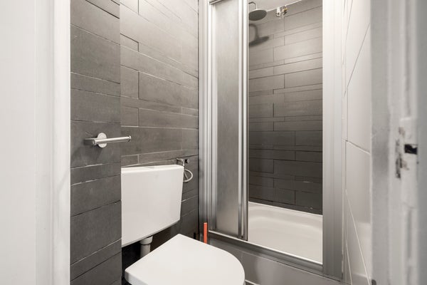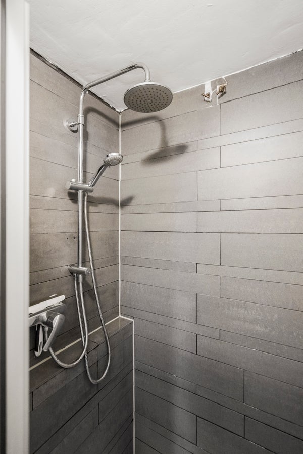 De badkamer is compact en functioneel en voorzien van een douche en toilet. Daarnaast is er nog een handige interne bergruimte aanwezig.