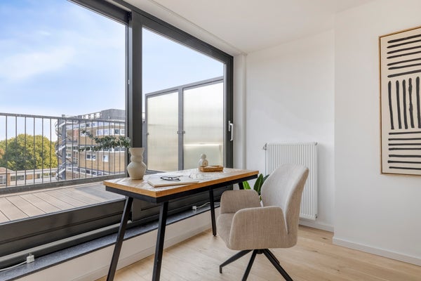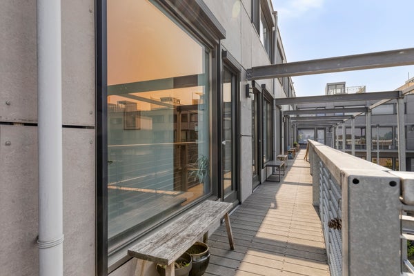 - De galerijflat heeft een woonoppervlakte van 105 m² en beschikt over 4 kamers, waarvan 2 slaapkamers;