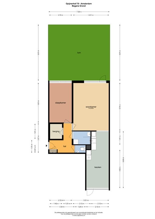 - Aanwezig (50 m², gelegen op het noordwesten)