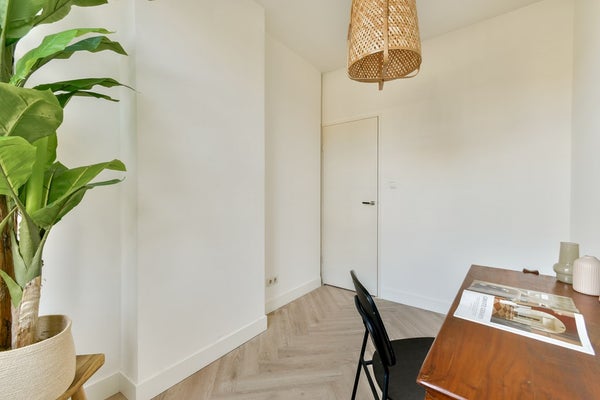 Aan de achterzijde van de woning bevinden zich de slaapkamers. Vanuit de ouderlijke slaapkamer heb je toegang tot het balkon, dat prettig is gelegen aan de rustige achterzijde. Grenzend aan de hal ligt daarnaast een tweede slaapkamer, ook ideaal te gebruiken als werkruimte, kinderkamer, logeerkamer of hobbyruimte. In de hal is bovendien een separaat toilet aanwezig.