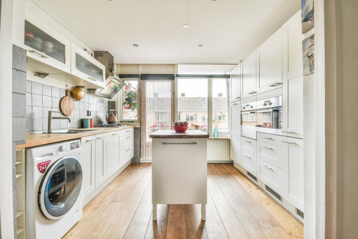 Woningzoekers opgelet! Dit lichte en verzorgde vierkamer appartement, gelegen op de derde verdieping van een goed onderhouden complex in een rustige straat in Nieuwendam, Amsterdam-Noord, heeft een woonoppervlakte van 77,4 m². Bij binnenkomst in de hal heeft u toegang tot een ruime, lichte woonkamer met grote raampartijen en een handige inbouwkast. De eerste slaapkamer, ideaal als werkkamer, grenst aan de woonkamer en biedt toegang tot een zuidoostelijk balkon. De tweede slaapkamer, bereikbaar vanuit de hal, biedt voldoende ruimte voor een bed en kledingkast. De halfopen keuken aan de voorzijde is voorzien van diverse inbouwapparatuur en heeft toegang tot een tweede balkon op het noordwesten. Het appartement beschikt ook over een derde slaapkamer, een badkamer met inloopdouche en aparte toiletruimte. Uniek aan deze woning zijn de twee bergingen: een op de begane grond van 6,5 m² en een zolderberging van 7,8 m². Gelegen nabij Baanakkerspark en voorzieningen zoals winkels, scholen, en speeltuinen. Metrostation Noord ligt op fietsafstand, en de Ring A10 is snel bereikbaar. De Vereniging van Eigenaren wordt professioneel beheerd. Erfpacht is voorbetaald tot en met 30 juni 2053.