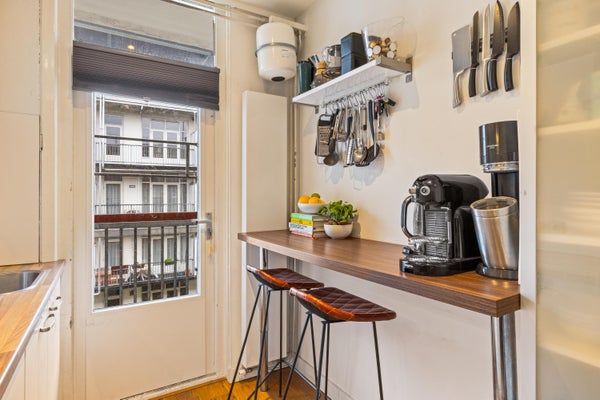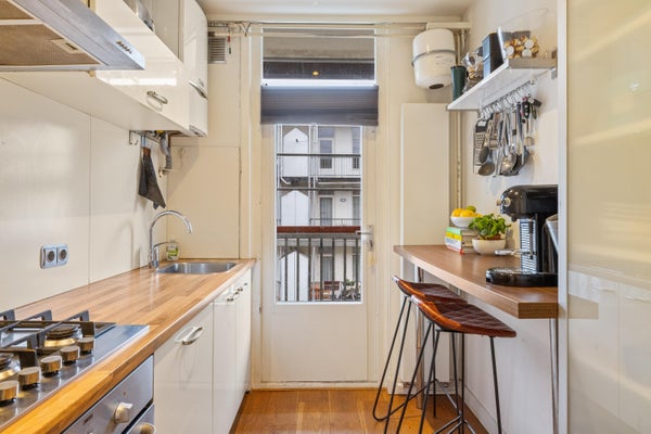 Within ten minutes, you can reach Amsterdam city center by tram or bike, and within two minutes by car, you're on the ring road. Parking is almost always available right outside the door. You'll live next to the bustling Mercatorplein and the charming streets of De Baarsjes, with lovely restaurants and cafes just around the corner. For daily groceries, there are several supermarkets nearby, including Albert Heijn and Dirk. For a good sandwich, you can go to Fort Negen and for delicious nuts, visit Alladin's Noten Hoek. For relaxation, Rembrandtpark is just one block away, ideal for a walk, picnic, or sporting activities.