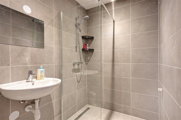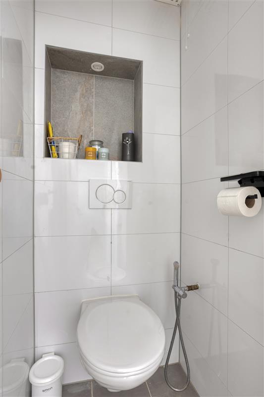 De keuken is van alle gemakken voorzien, inclusief een Quooker voor direct kokend water. De badkamer is stijlvol en beschikt over een inloopdouche en een praktisch badkamermeubel, met daarnaast een apart toilet.