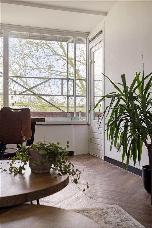 MODERN LIVING IN VIBRANT AMSTERDAM WEST Step into this beautiful apartment and instantly feel at home. You’re literally walking into a magazine-worthy space, complete with a newly installed, sleek herringbone PVC floor that seamlessly connects all areas. The living room is a delightful spot to relax, flooded with light from large windows and spacious enough to entertain various layout ideas. Craving some fresh air? Step out onto the balcony directly from the living room, where you can enjoy a delicious breakfast in the sun every morning. With an eastern exposure, you’ll be greeted by perfectly timed morning sunlight – a promise of a great day ahead.