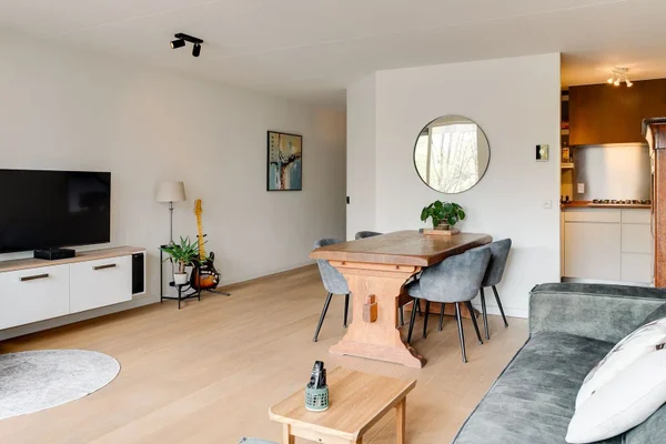 Gelegen op de tweede verdieping van een modern gebouw uit 1996, beschikt het over een lift en een ruime berging van 5 m² op de begane grond. De eigen entree met ongeveer 3 m² extra ruimte zorgt voor een ruimtelijk gevoel. De lichte woonkamer kijkt uit op de gracht en heeft een inpandig balkon. De open keuken biedt ruimte voor een eethoek.