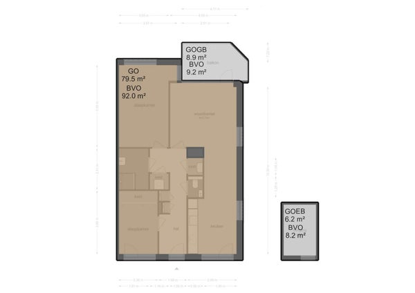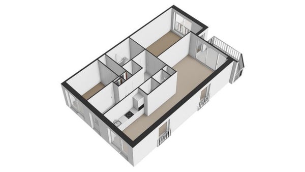 - De portiekflat heeft een woonoppervlakte van 80 m² en beschikt over 3 kamers, waarvan 2 slaapkamers;
