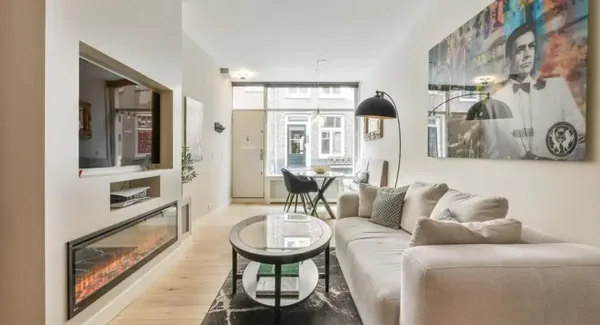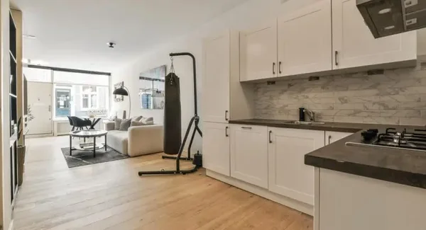 In het hart van de Jordaan vindt u dit mooi afgewerkte begane grond appartement van ca. 52 m2. Het verblijf, gelegen in een voormalig winkelpand, straalt ruimte uit met hoge plafonds en grote ramen aan de voorzijde. De recent gerenoveerde woning beschikt over een open keuken voorzien van alle inbouwapparatuur en een luxe badkamer met inloopdouche. De ruime woonkamer heeft een hoogte van 2,85 m, een sfeervolle elektrische haard en moderne afwerking. De slaapkamer biedt genoeg ruimte voor een groot bed en kasten, met toegang tot de privé patio van bijna 9 m2 op het noordwesten. Gelegen in een rustige straat met de Noordermarkt en trendy restaurants in de buurt, biedt dit appartement de perfecte combinatie van comfort en gezelligheid.