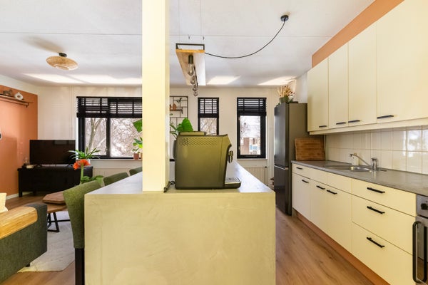 Op een rustige locatie in Apeldoorn bevindt zich deze ruime 3-kamermaisonnette, mooi gelegen op de 2e en 3e verdieping van een kleinschalig appartementencomplex. Met een woonoppervlakte van 88 m², biedt de woning een lichte woonkamer die toegankelijk is via de hal, en een moderne open keuken met kookeiland die in 2023 is vernieuwd. Een royaal dakterras van meer dan 12 m² en een berging op de begane grond zorgen voor extra gemak. De vernieuwde badkamer (2024) is voorzien van een wastafelmeubel en douchehoek, met een afzonderlijk toilet. Op de verdieping zijn een slaapkamer en een tweede kamer die perfect kan dienen als werkkamer. Voorzieningen zoals winkels en OV bevinden zich dichtbij, en de maandelijkse servicekosten zijn circa € 184,50.