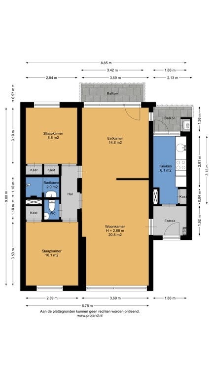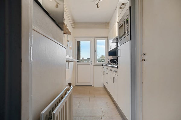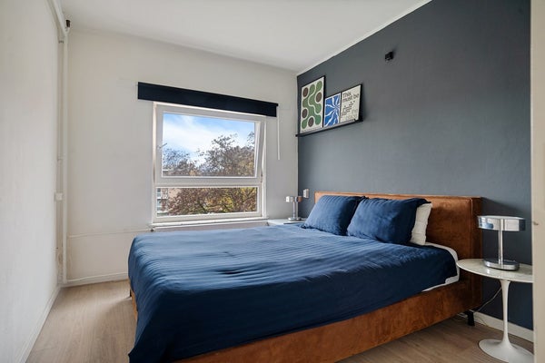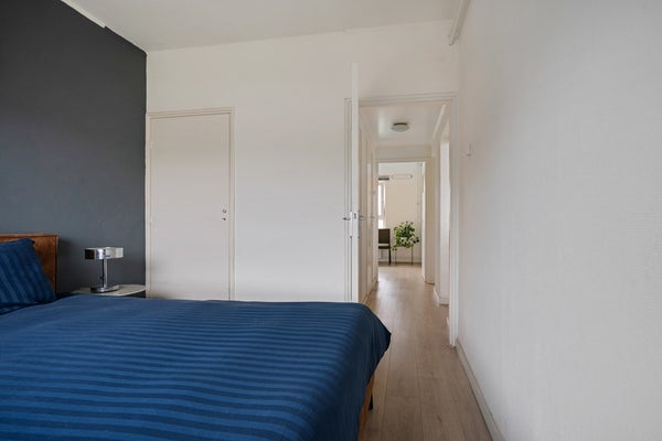 - De portiekflat heeft een woonoppervlakte van 77 m² en beschikt over 4 kamers, waarvan 2 slaapkamers;