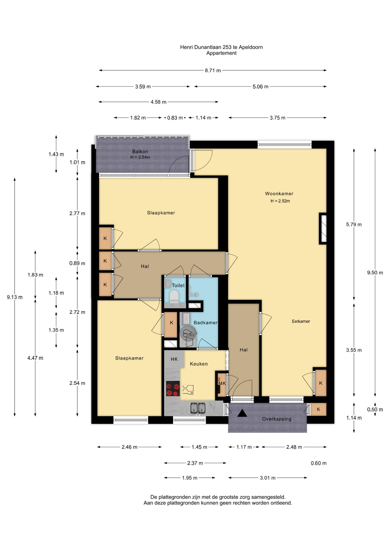 - De galerijflat heeft een woonoppervlakte van 83 m² en beschikt over 3 kamers, waarvan 2 slaapkamers;