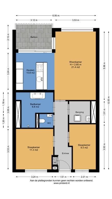 - De galerijflat heeft een woonoppervlakte van 75 m² en beschikt over 3 kamers, waarvan 2 slaapkamers;