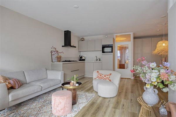 • De portiekflat heeft een woonoppervlakte van 52 m² en beschikt over 2 kamers, waarvan 1 slaapkamer;