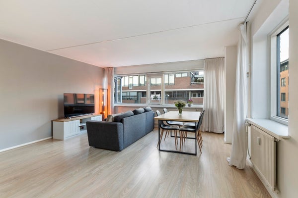 Dit fraaie 3-kamer hoekappartement bevindt zich op de 2e woonlaag van een kleinschalig complex, gelegen boven winkels net buiten het centrum. De afgesloten entree met intercom en de nieuwe lift bieden extra gemak. Bij binnenkomst in de hal is er toegang tot de lift en op de 2e verdieping ligt het appartement aan het einde van de hal. De indeling omvat een entree met garderobehoek, een badkamer met douche, toilet, wasmachine-aansluiting en een nieuwe boiler(opstelling 2023). Er is een ruime slaapkamer aan de voorzijde en een lichte woonkamer met een open keuken, voorzien van moderne apparatuur. Een tweede slaapkamer is aan de kopse kant gelegen. Het appartement is uitgerust met thermopane beglazing en de servicekosten bedragen €155 per maand. Het biedt een woonoppervlakte van 63 m².