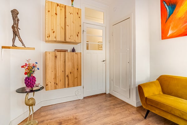 Deze mooie bovenwoning met hoekligging heeft een woonoppervlakte van ongeveer 112 m², verdeeld over drie woonlagen. Je vindt hier een sfeervolle living met kamer-en-suite en een moderne halfopen keuken, vernieuwd in 2024. Drie ruime slaapkamers en drie balkons bieden voldoende ruimte en comfort. De actieve VvE heeft een maandelijkse bijdrage van ongeveer € 241,-. Gelegen in de wijk 'Onder de Linden', dichtbij parken en op loopafstand van de Arnhemse binnenstad, zijn leuke boetiekjes en hippe restaurants makkelijk te bereiken. Parkeren kan gratis in de straat. De indeling omvat een originele jaren '30 voordeur, een lichte woonkamer, een riante hoofdslaapkamer met twee balkons en een moderne badkamer. De 3e verdieping, bereikbaar via een vaste trap, biedt extra mogelijkheden.