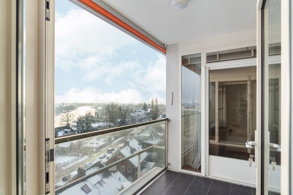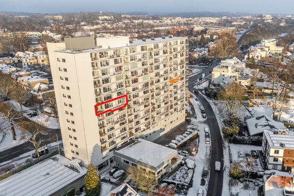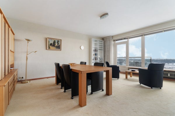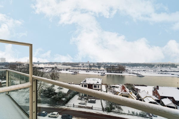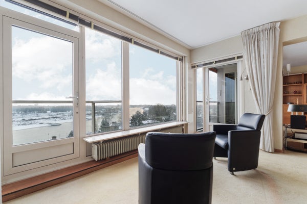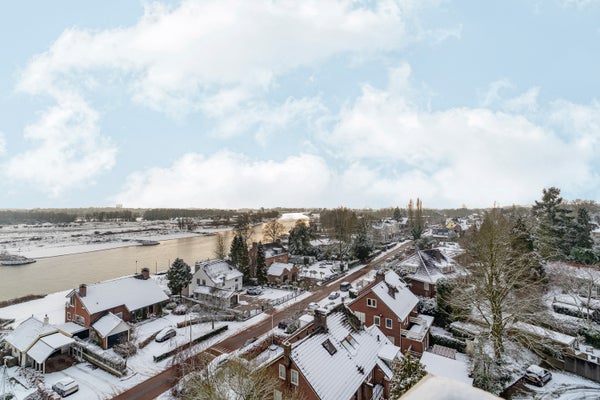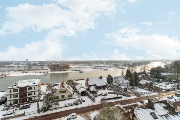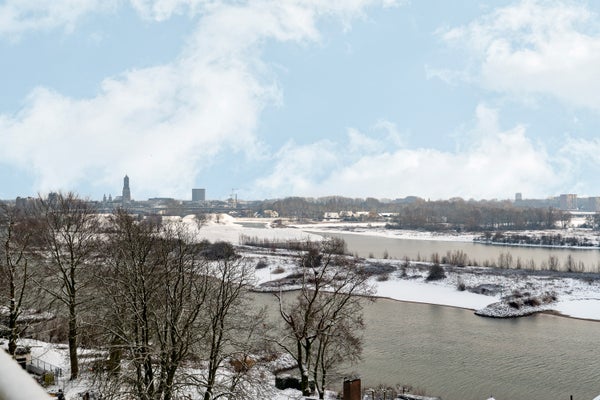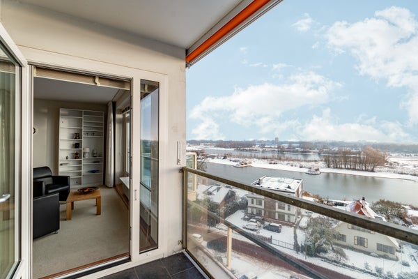 Dit ruime hoekappartement is gelegen op de zesde verdieping en heeft een oppervlakte van circa 93 m². Met een fantastisch uitzicht over de Rijn en de uiterwaarden, is de entree dicht bij de lift in een afgesloten trappenhuis. Het appartement heeft een loggia en een balkon, een inpandige garage en een berging in de onderbouw.