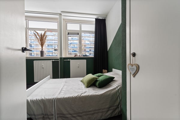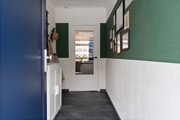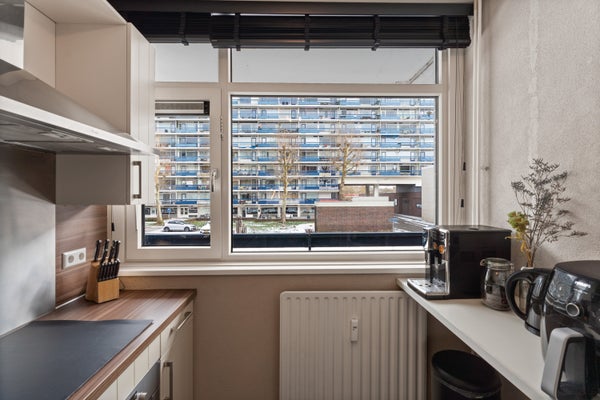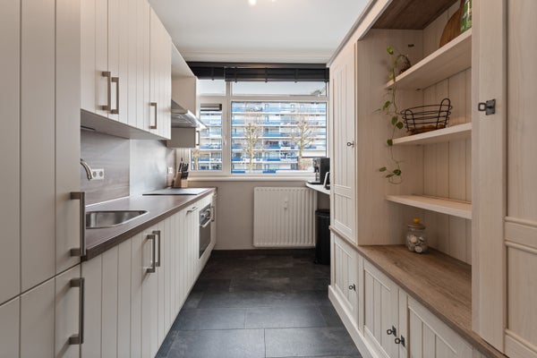 Via de galerij bereik je de entree van het appartement. De hal met meterkast leidt naar de ruime woonkamer met halfopen keuken. De keuken is voorzien van diverse inbouwapparatuur, zoals kookplaat, afzuigkap, koelkast en vriezer. De woonkamer biedt toegang tot het zonnige balkon, perfect gelegen om te genieten van zonlicht en een groen uitzicht. Vanuit de hal bereik je ook de twee goed bemeten slaapkamers (ca. 15 m² en 12 m²). Badkamer komt uit 2023 voorzien van douche, wastafel. Separate wasruimte geschikt voor wasmachine en wasdroger.