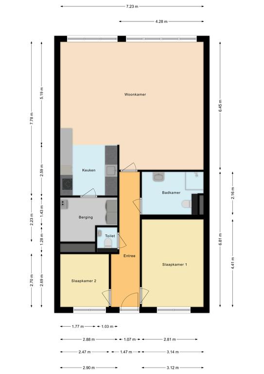 - De galerijflat heeft een woonoppervlakte van 97 m² en beschikt over 3 kamers, waarvan 2 slaapkamers;