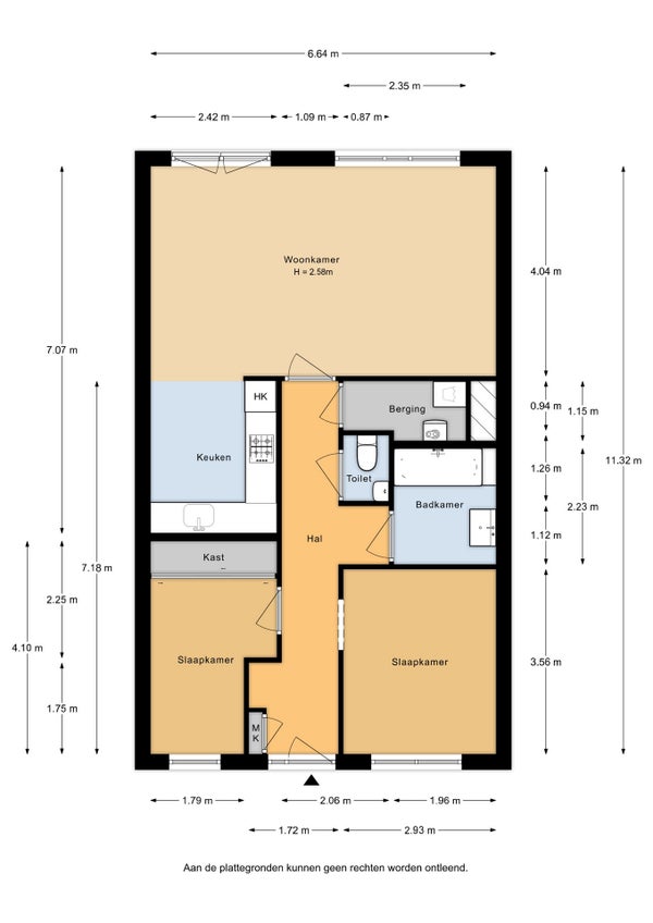 - De galerijflat heeft een woonoppervlakte van 75 m² en beschikt over 3 kamers, waarvan 2 slaapkamers;