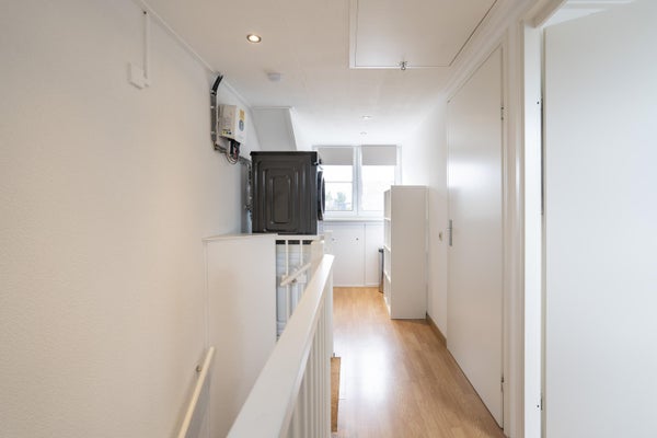 De eerste verdieping biedt drie slaapkamers en een moderne badkamer. De tweede verdieping heeft nog eens twee slaapkamers, met veel daglicht door dakkapellen. Verwarming gaat via een CV-ketel en er zijn diverse energiebesparende voorzieningen.