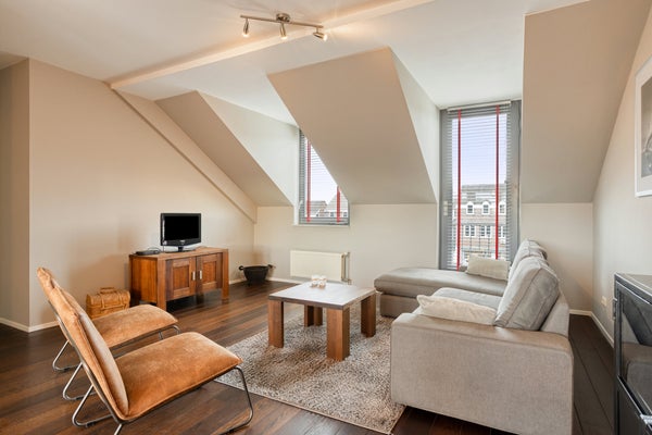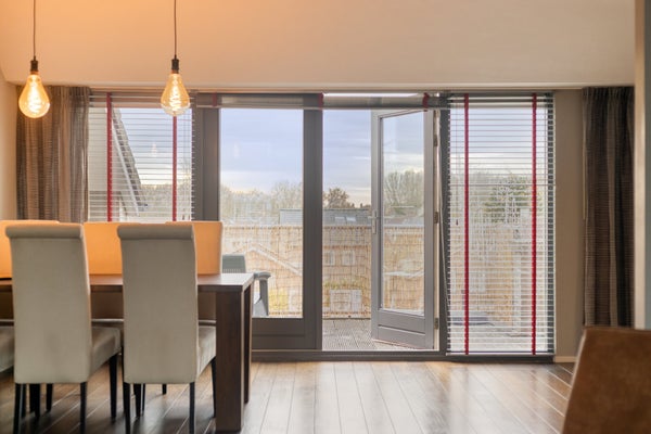 Dit moderne 3-kamer appartement is gelegen op de tweede verdieping aan het vernieuwde Piet van Thielplein, waar elke woensdag de weekmarkt plaatsvindt. Met 93 m² woonoppervlakte biedt het een ruime woonkamer en open keuken, voorzien van moderne apparatuur, zoals een granieten werkblad en RVS afzuigkap. De woning beschikt over twee slaapkamers en een ruime badkamer met ligbad en douche. Een eigen dakterras van 14 m² en een inpandige berging van 7 m² zijn ook inbegrepen. Het appartement is instapklaar en heeft energielabel B. De maandelijkse VvE-bijdrage bedraagt € 173,-. Op de begane grond zijn er gezamenlijke voorzieningen en toegang tot de openbare parkeerplaatsen in de straat. Ideaal voor stads wonen met comfort.