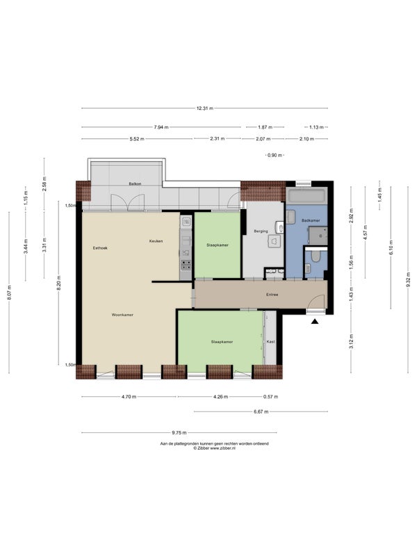 - De galerijflat heeft een woonoppervlakte van 93 m² en beschikt over 3 kamers, waarvan 2 slaapkamers;