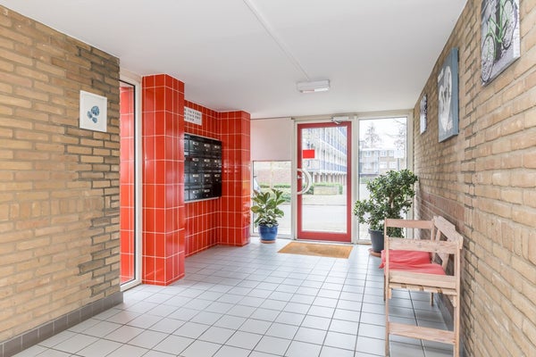 Afgesloten entree met intercom, brievenbussen en toegang tot de bergingen.