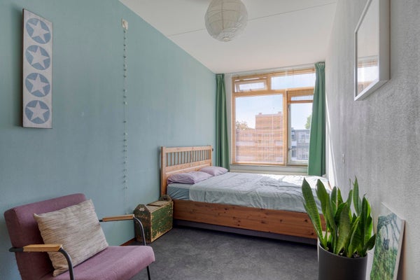 - De portiekflat heeft een woonoppervlakte van 105 m² en beschikt over 4 kamers, waarvan 3 slaapkamers;