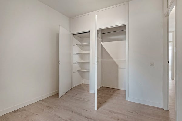 Het appartement beschikt over één slaapkamer. De slaapkamer is afgewerkt met een laminaat vloer (2025), gesauste wanden en een spuitwerk plafond. De slaapkamer is voorzien van inbouwkasten.