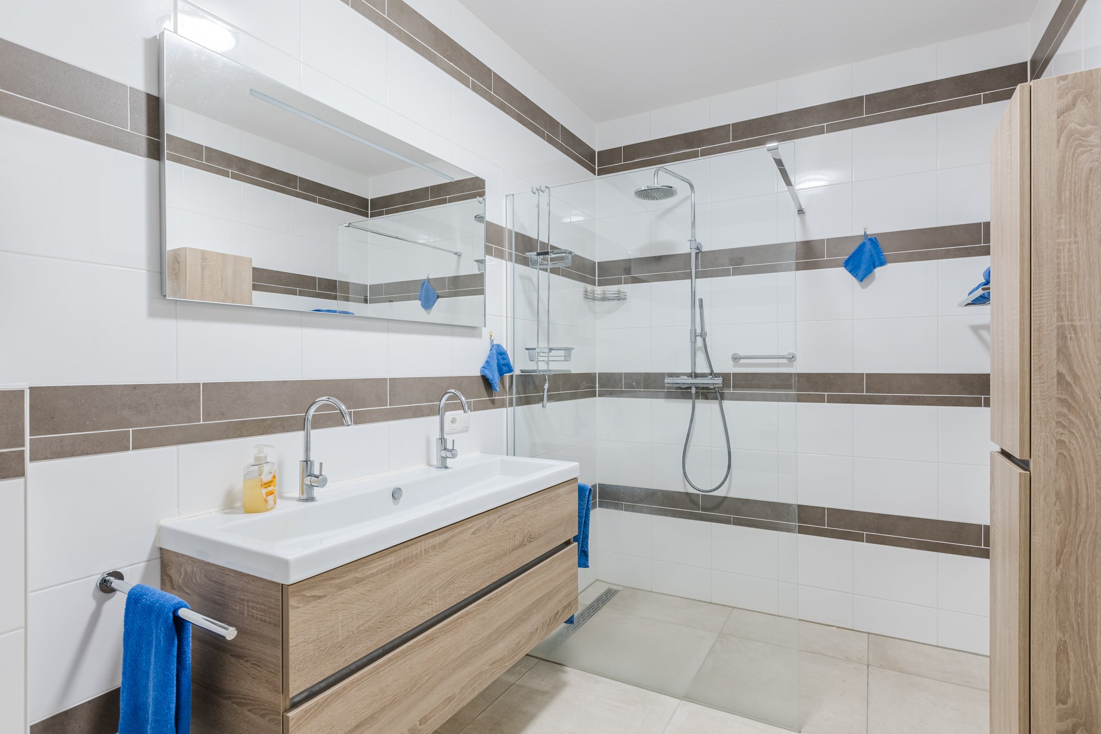 Dit appartement, gebouwd in 2019, biedt een ruime woonoplossing van 185 m² met vijf kamers, waaronder vier slaapkamers en twee badkamers. De badkamers zijn volledig uitgerust met moderne voorzieningen zoals een toilet, bidet, dubbele wastafel, wastafelmeubel en een inloopdouche, plus vloerverwarming voor extra comfort. Gelegen in een woonwijk, beschikt het appartement over een extern bergruimte van 33 m² en een gebouwgebonden buitenruimte van 13 m². Het appartement is verdeeld over twee woonlagen en heeft mechanische ventilatie, een lift en glasvezelaansluiting. Er zijn ook parkeervergunningen beschikbaar. Met een energielabel A en volledige isolatie is het zowel energiezuinig als comfortabel.