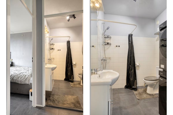 - De portiekflat heeft een woonoppervlakte van 45 m² en beschikt over 2 kamers, waarvan 1 slaapkamer;